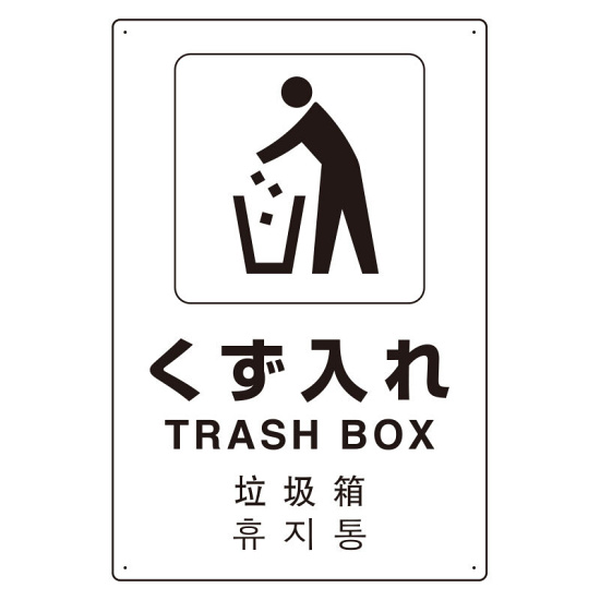 4カ国語標識 平板タイプ アルミ製 くず入れ H450×W300(802-919)