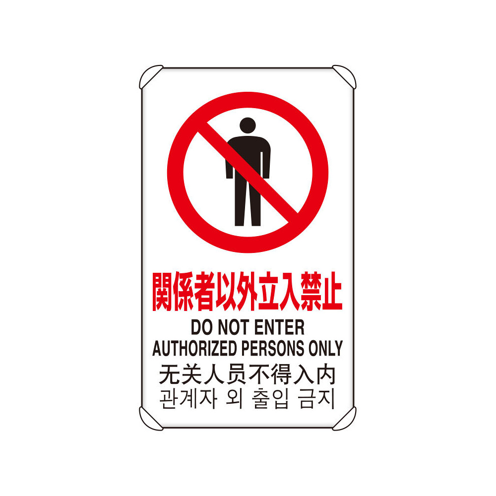 - 4カ国語標識 平リブタイプ 関係者以外立入禁 H680×W400(833-901)