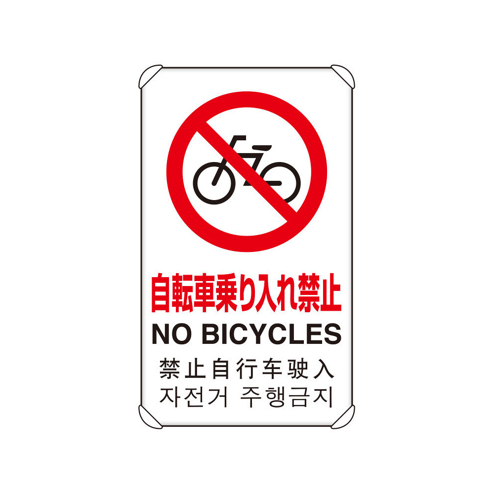 商品説明:4カ国語標識 平リブタイプ 自転車乗り入禁 H680×W400(833-907)