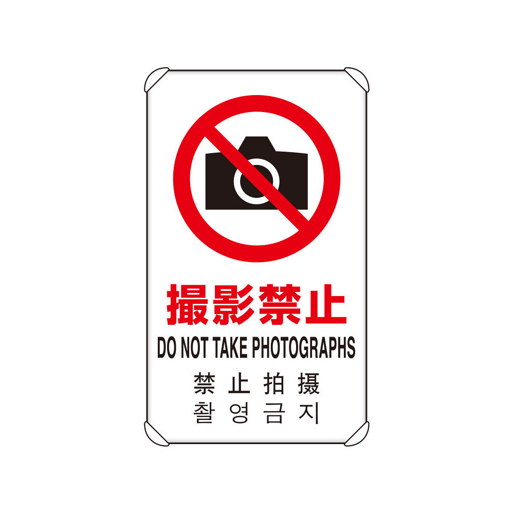 商品説明:4カ国語標識 平リブタイプ 撮影禁止 H680×W400(833-908)