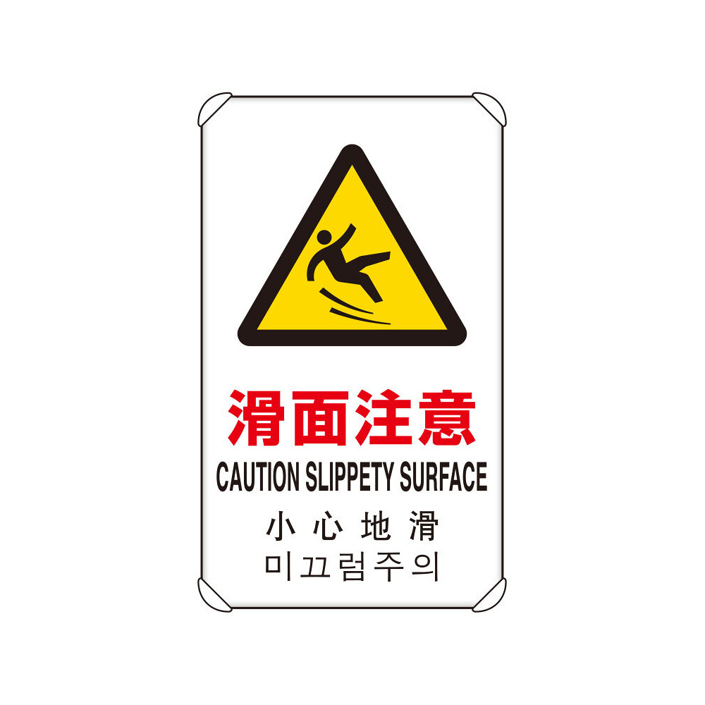 4カ国語標識 平リブタイプ 滑面注意 H680×W400(833-909)
