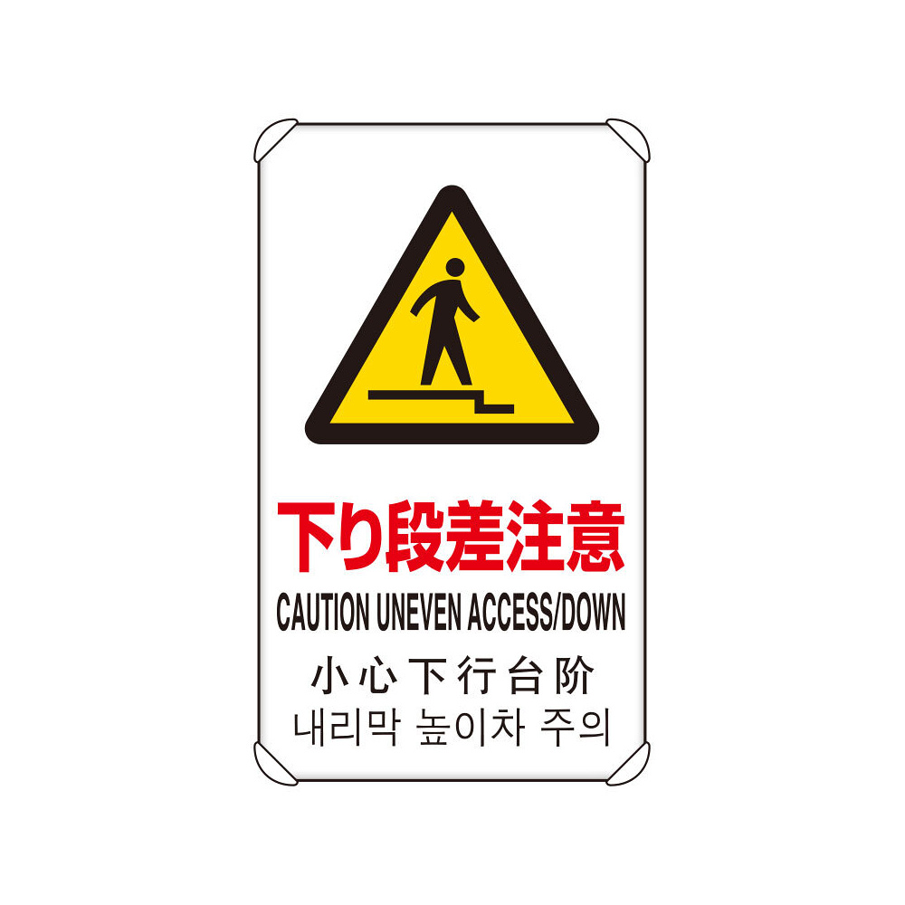 4カ国語標識 平リブタイプ 下り段差注意 H680×W400(833-911)