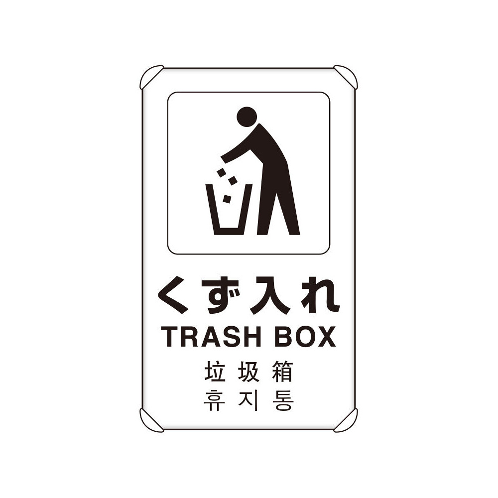 4カ国語標識 平リブタイプ くず入れ H680×W400(833-912)