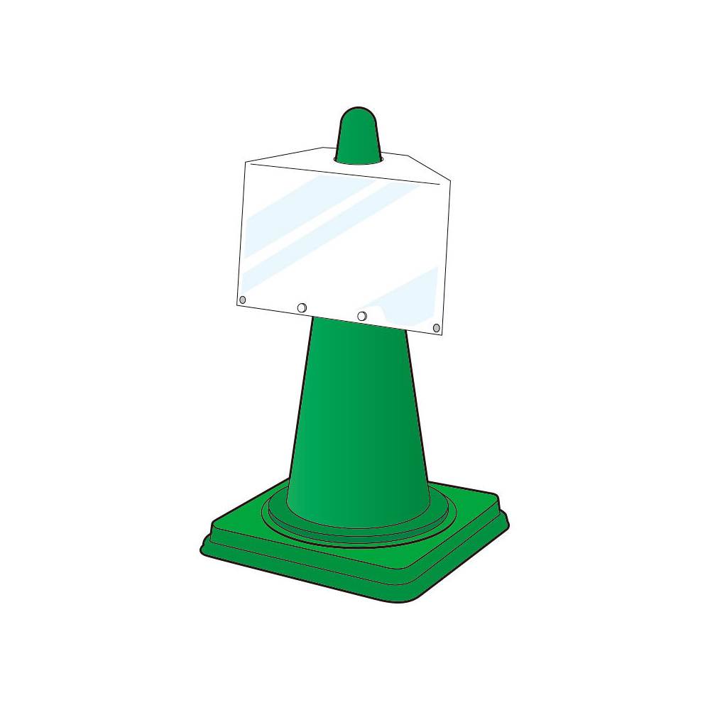 カラーコーンに取り付けられる簡単標識。作成した用紙を入れられるので便利!