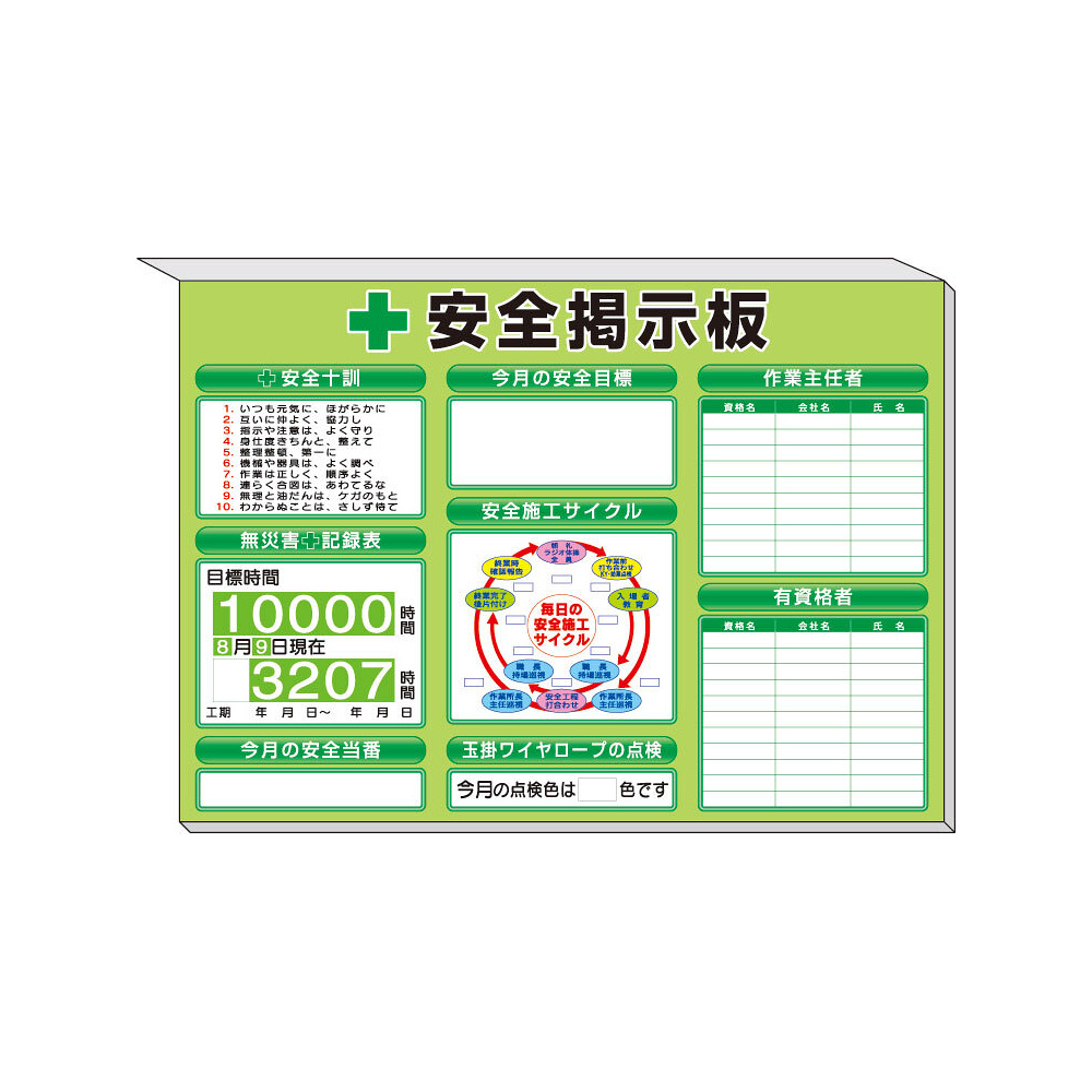 商品説明:スーパーフラットミニ掲示板 施工サイクル他入 カラー:緑地 (313-52G)