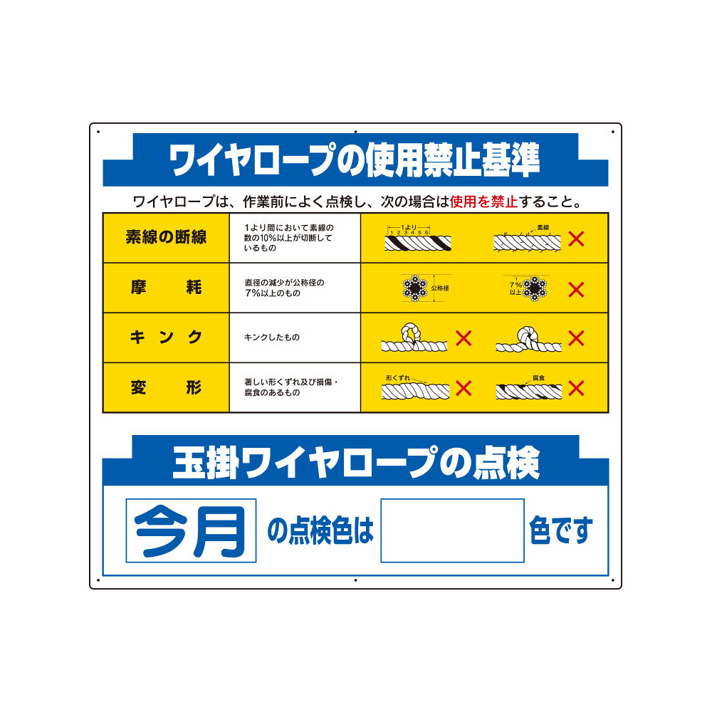 安全掲示板 (木製) 用 パネルのみ 表示内容: (J) ワイヤロープ… (314-19)