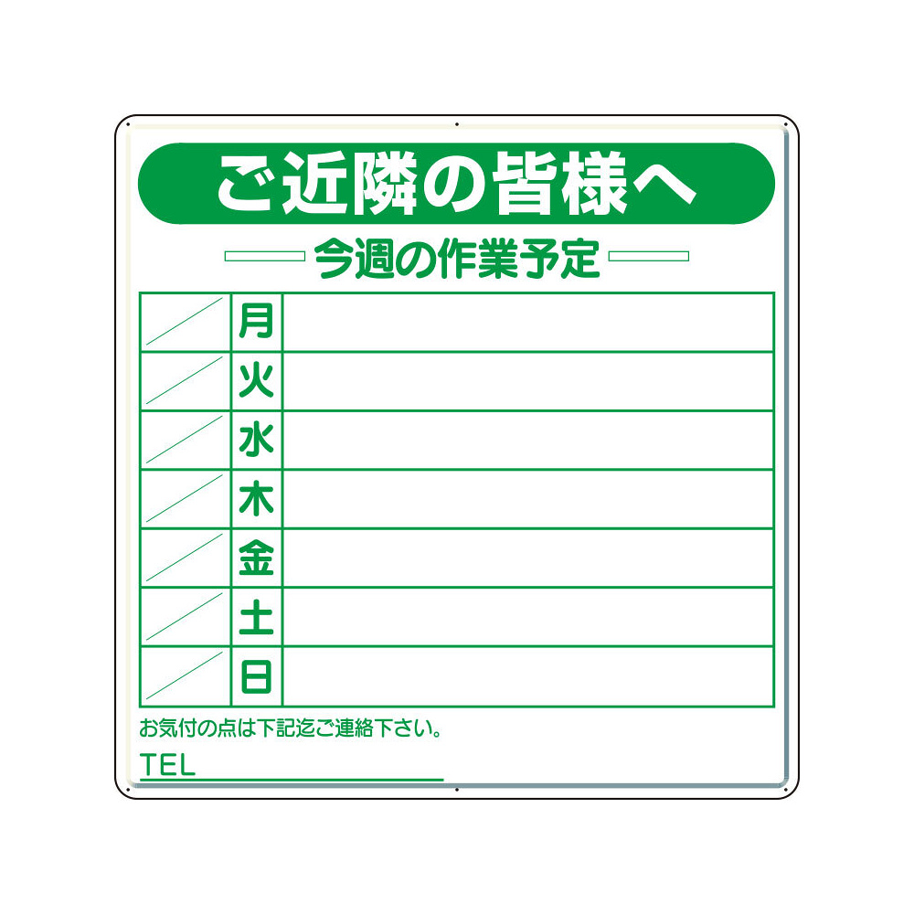 作業予定看板セット ご近隣の皆様へ 900mm角 水性ペン・消具付 (301-11)