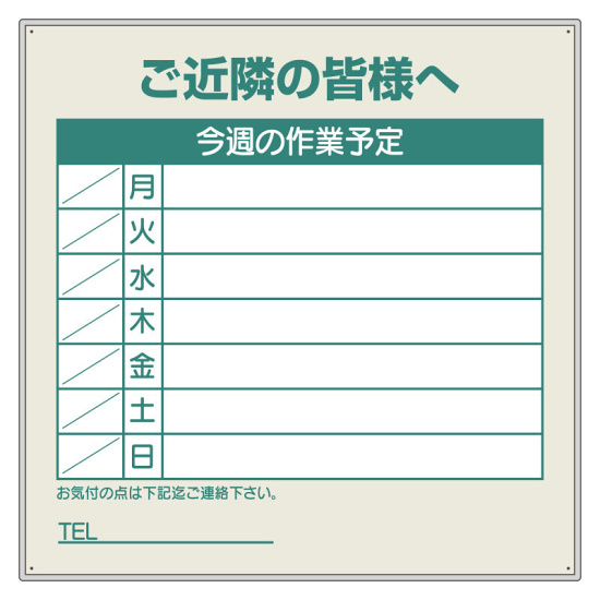 作業予定看板セット ご近隣の皆様へ カラー:緑 (301-38)
