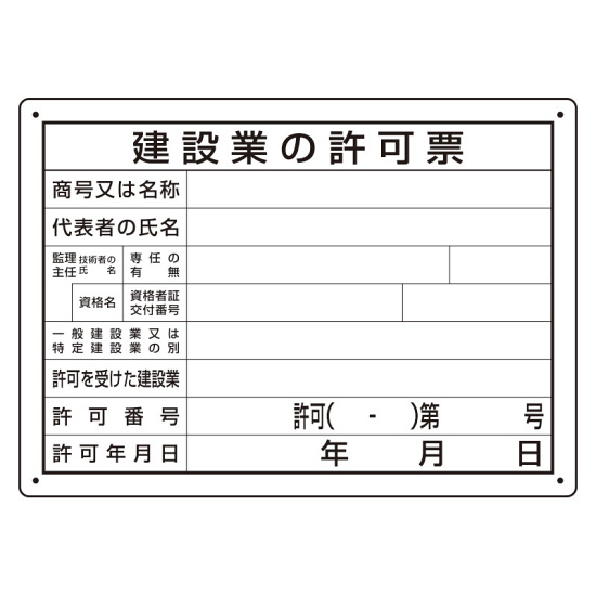 商品説明:法令許可票 建設業の許可票 (302-031A)