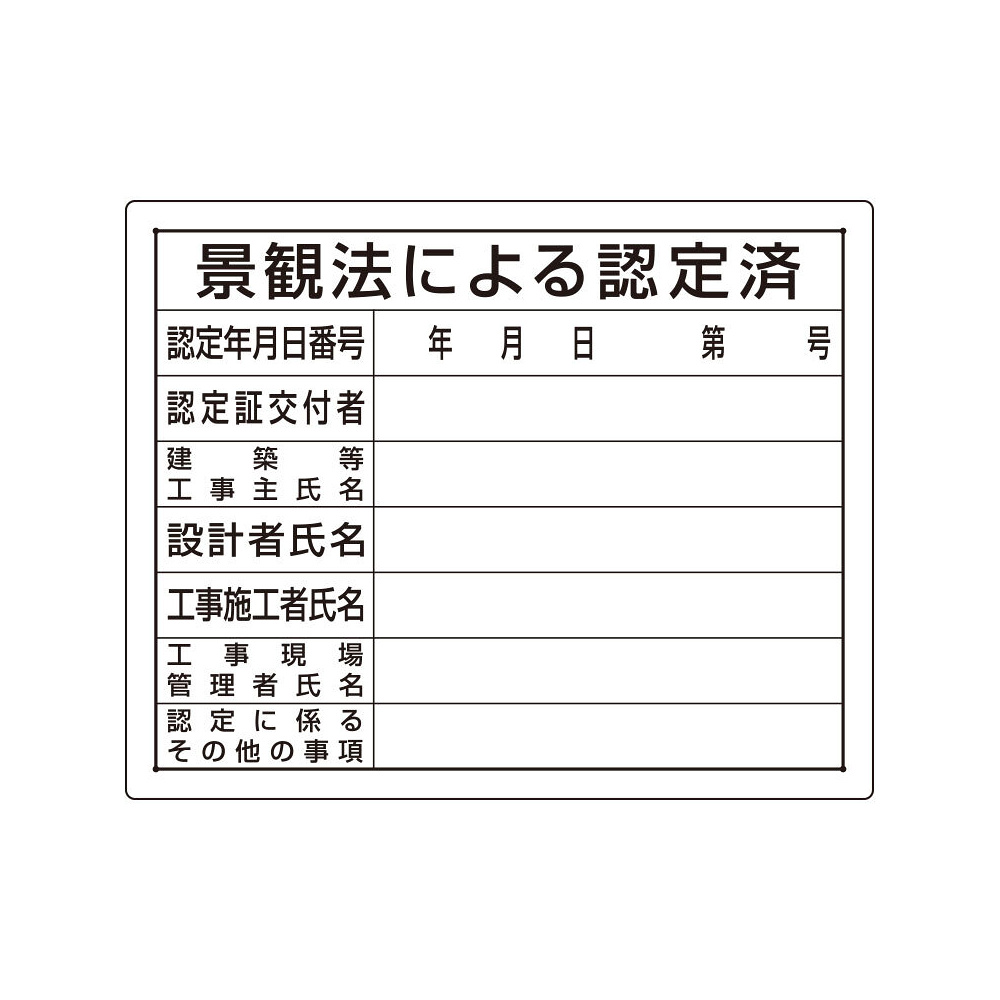 商品説明:法令許可票 表記:景観法による認定済 (302-15)