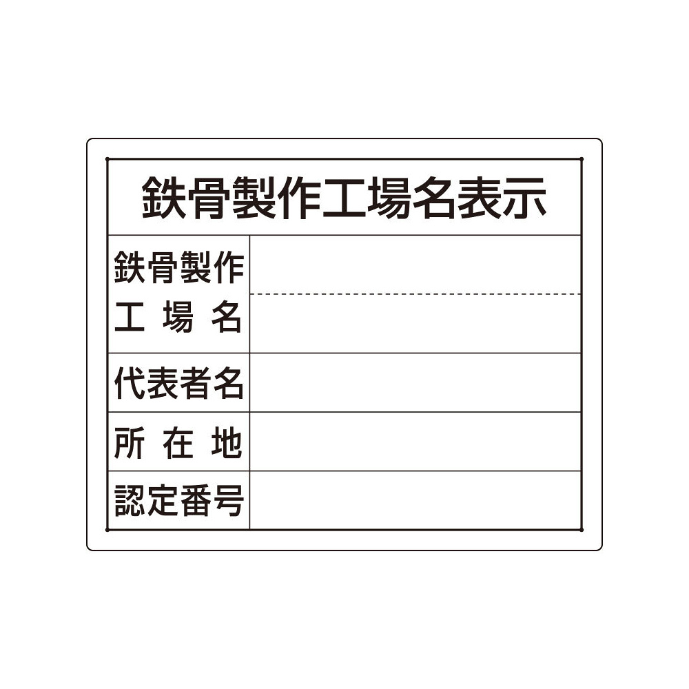 商品説明:鉄骨製作工場名表示 仕様:単独工場用 (302-18)