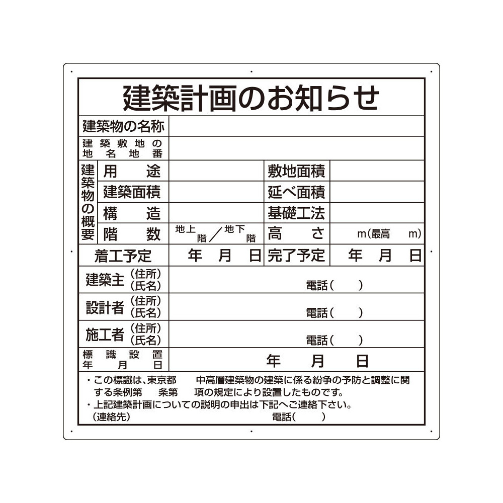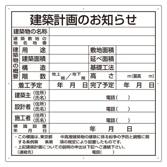 商品説明:建築計画のお知らせ看板 (東京都型) (302-21)
