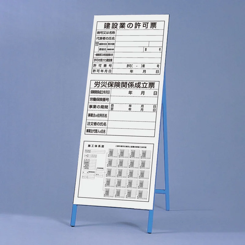 A型看板タイプの法令許可票です。
