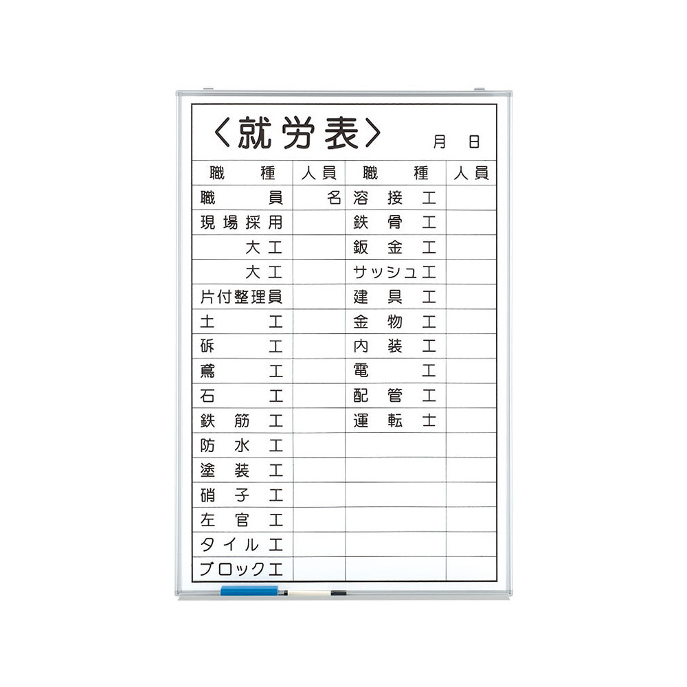 商品説明:ホワイトボード就労表 (職種記入) (373-32)