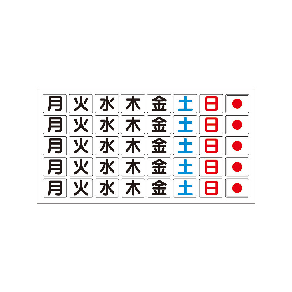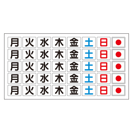商品説明:ホワイトボード曜日マグネット板 (シート) (373-67)