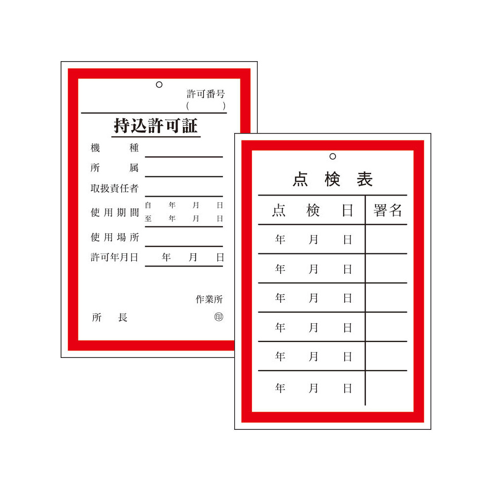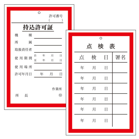 「持込許可証・点検表 (両面表示) (321-01)」の導入をご検討中ですか? 大量注文・複数台のご検討に応じたお見積りのご相談、最短納期や送料、仕様・サイズの確認など、 電気・電圧関係標識選びをまとめてサポートいたします。