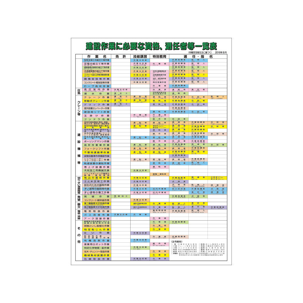 建設作業に必要な資格選任者等一覧表です。
