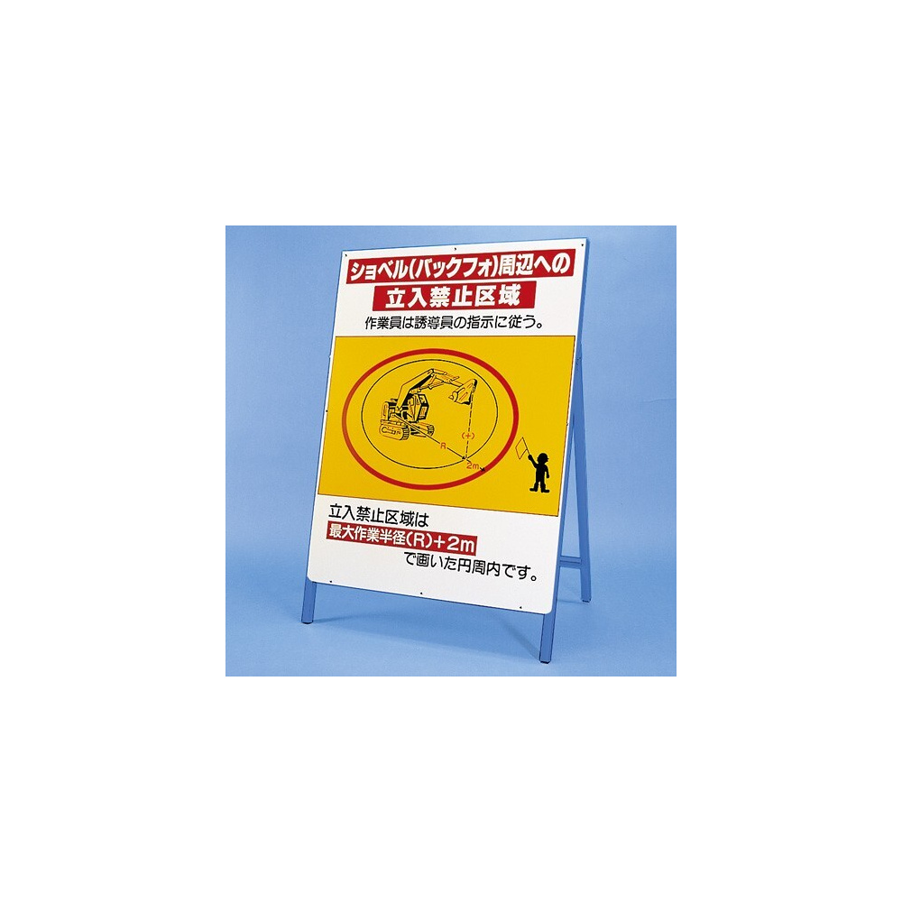 商品説明:立看板 ショベル (バックフォ) 周辺への… 仕様:鉄板・鉄枠セット (326-46)