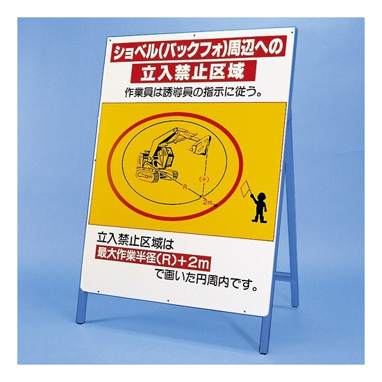 立看板 ショベル (バックフォ) 周辺への… 仕様:鉄板・鉄枠セット (326-46)