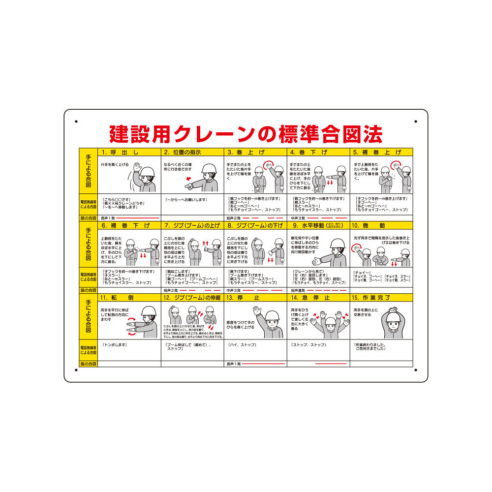 商品説明:建設用クレーンの標準合図法標識 サイズ:450×600 (327-32A)
