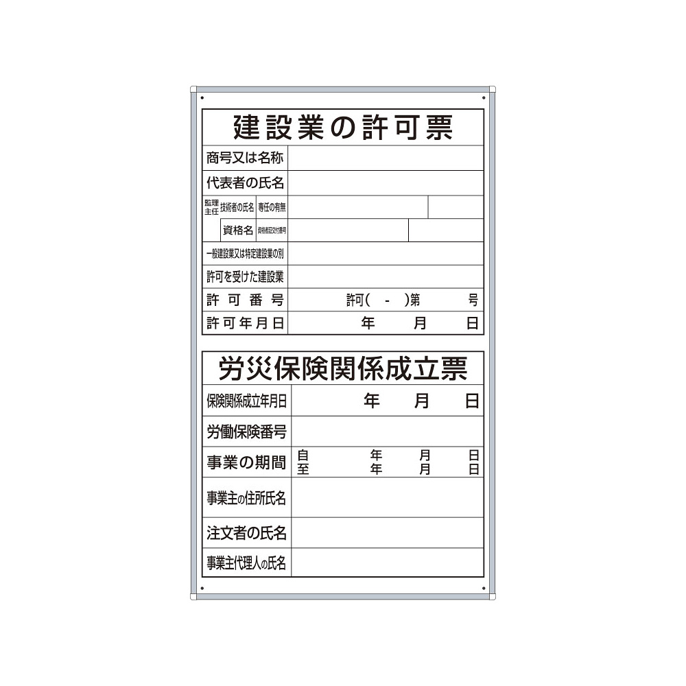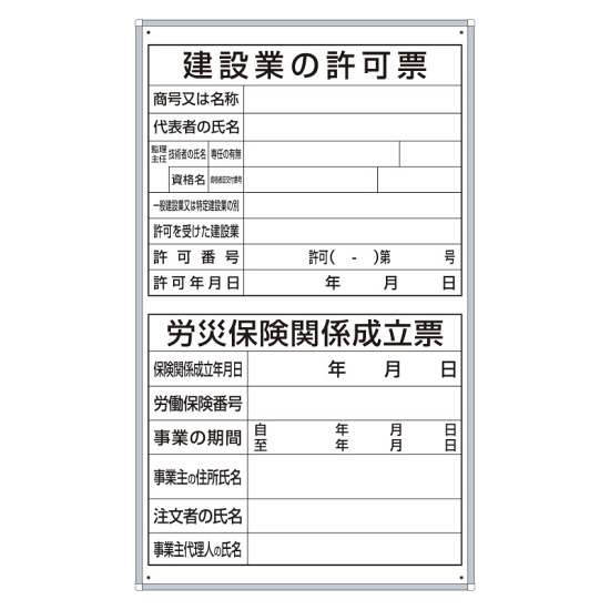 - 表示内容:建設業の許可票/労災保険関係成立票