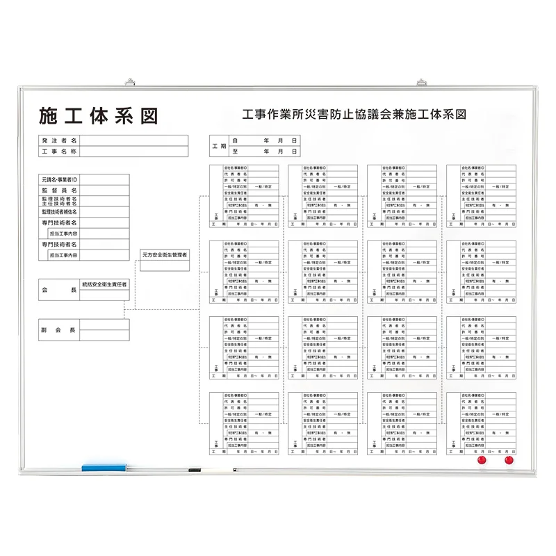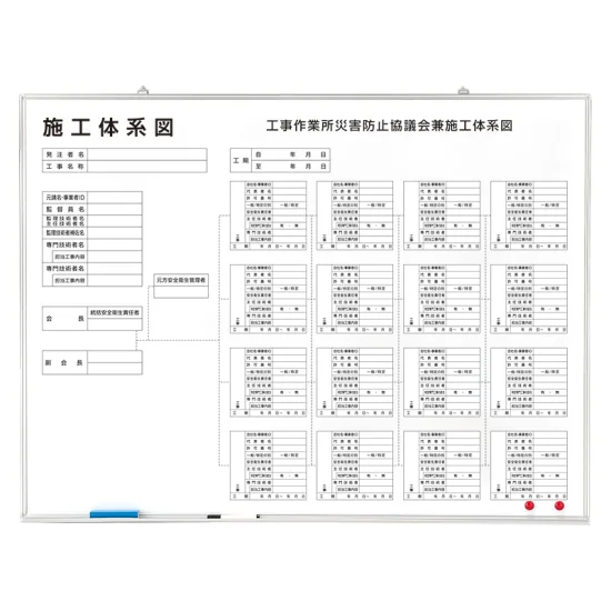 施工体系図 ホワイトボードタイプ 水性ペン・消し具付 (屋内用) (317-73B)