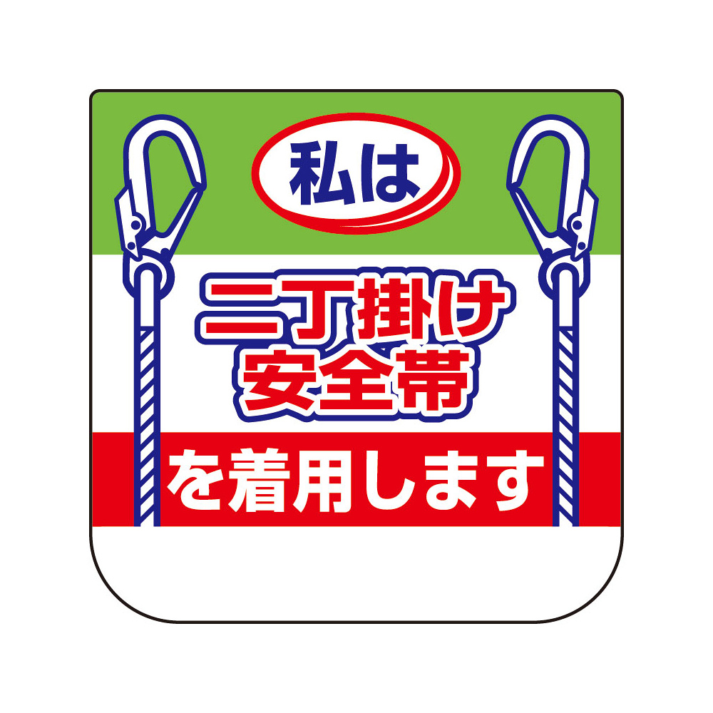 商品説明:ビニール製胸章 10枚1組 表示内容:私は二丁掛け安全帯 (368-20)