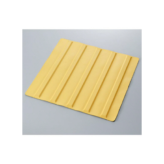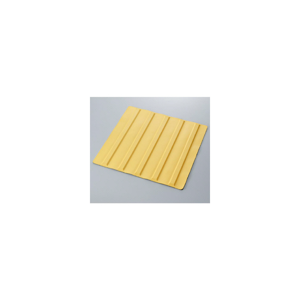 - 本製品は合成ゴム(軟質)により成形したもので、「のり付 点字タイル」として製造段階において裏面に無溶剤性の 特殊なゴム系粘着剤を感圧処理し、粘着剤面を離型紙(セ パレーター)で保護した製品です。