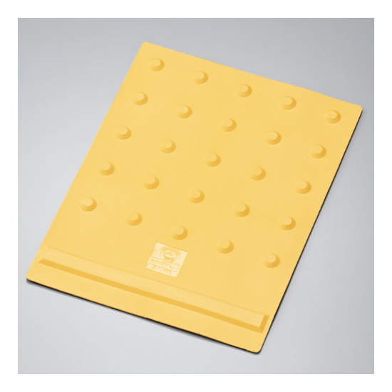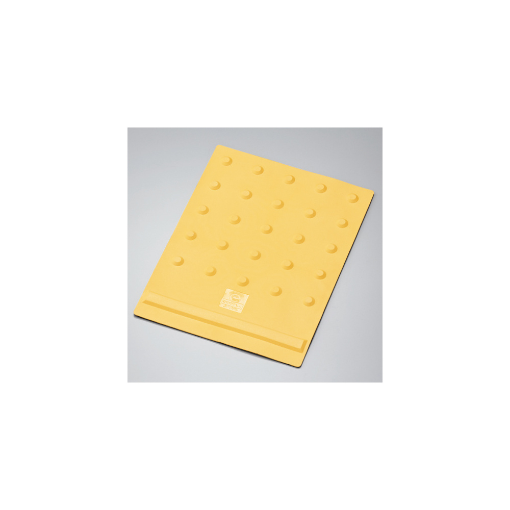 - 本製品は合成ゴム(軟質)により成形したもので、「のり付 点字タイル」として製造段階において裏面に無溶剤性の 特殊なゴム系粘着剤を感圧処理し、粘着剤面を離型紙(セ パレーター)で保護した製品です。