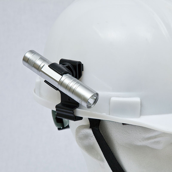 ワンタッチでペンライトをヘルメットに装着できるホルダー