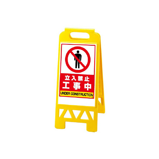 - フロアユニスタンド 立入禁止 工事中 カラー:黄色 (868-373AY)