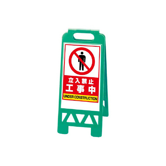 - フロアユニスタンド 立入禁止 工事中 カラー:緑色 (868-373AG)