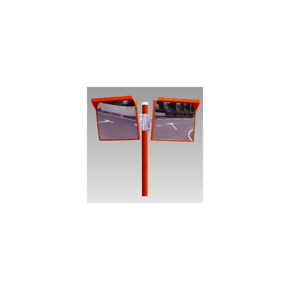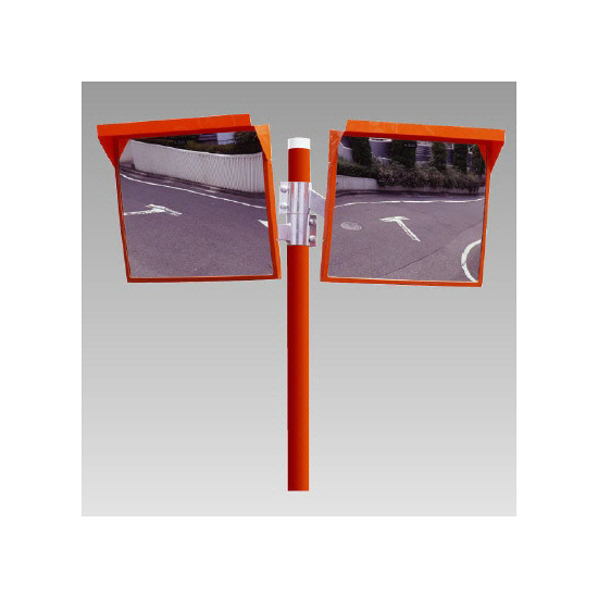 道路設置用角型カーブミラー アクリル製二面鏡 ミラー・ポールセット ミラーサイズ:500×600mm (384-30)