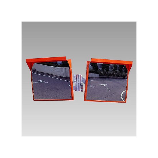 道路設置用角型カーブミラー アクリル製二面鏡 ミラーのみ ミラーサイズ:500×600mm (384-68)