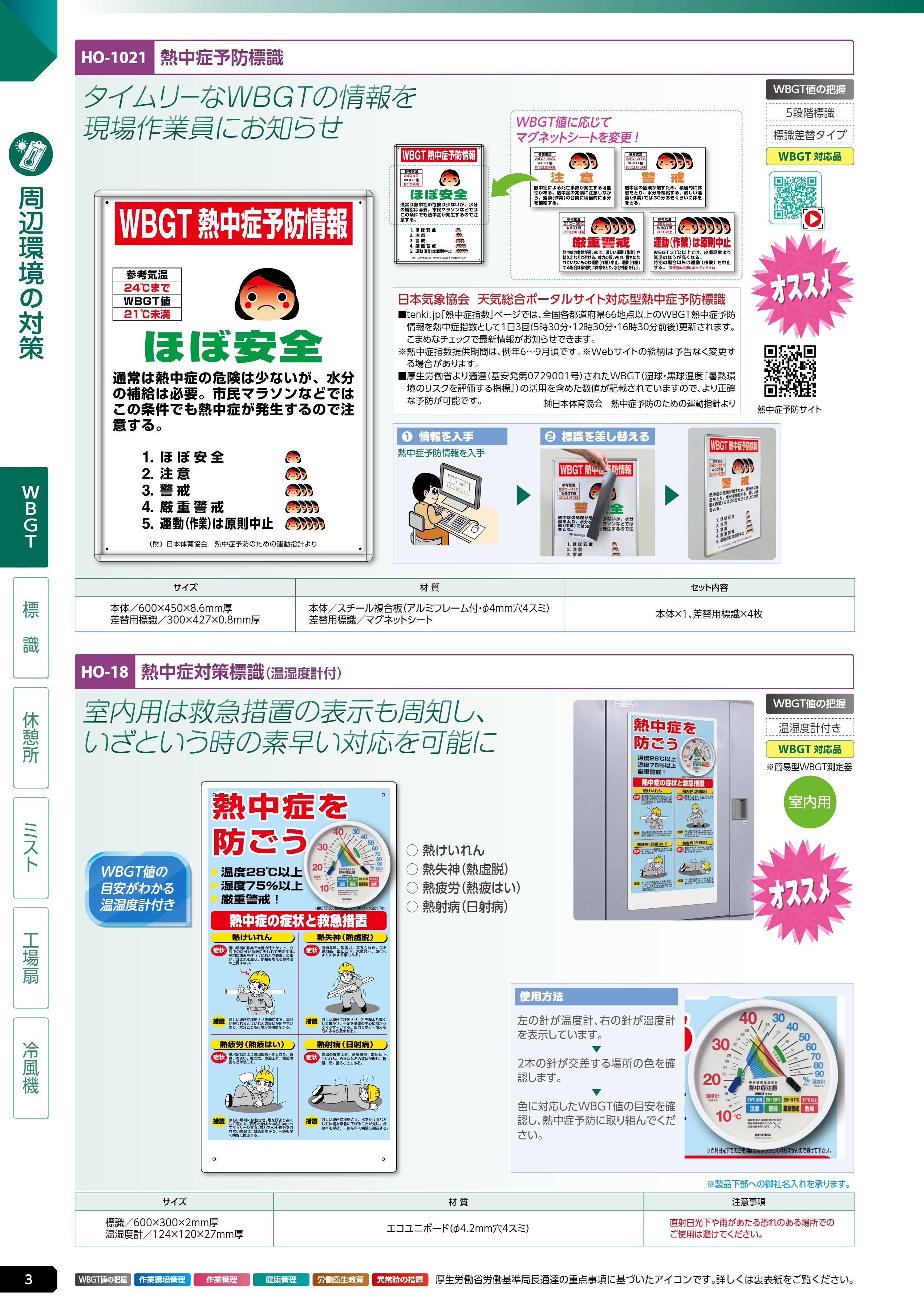 熱中症対策標識 温湿度計付 (HO-18)は、ユニット 熱中症対策用品カタログ 2026年版(166R) P.3に掲載されています