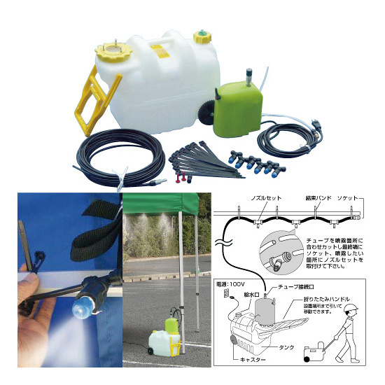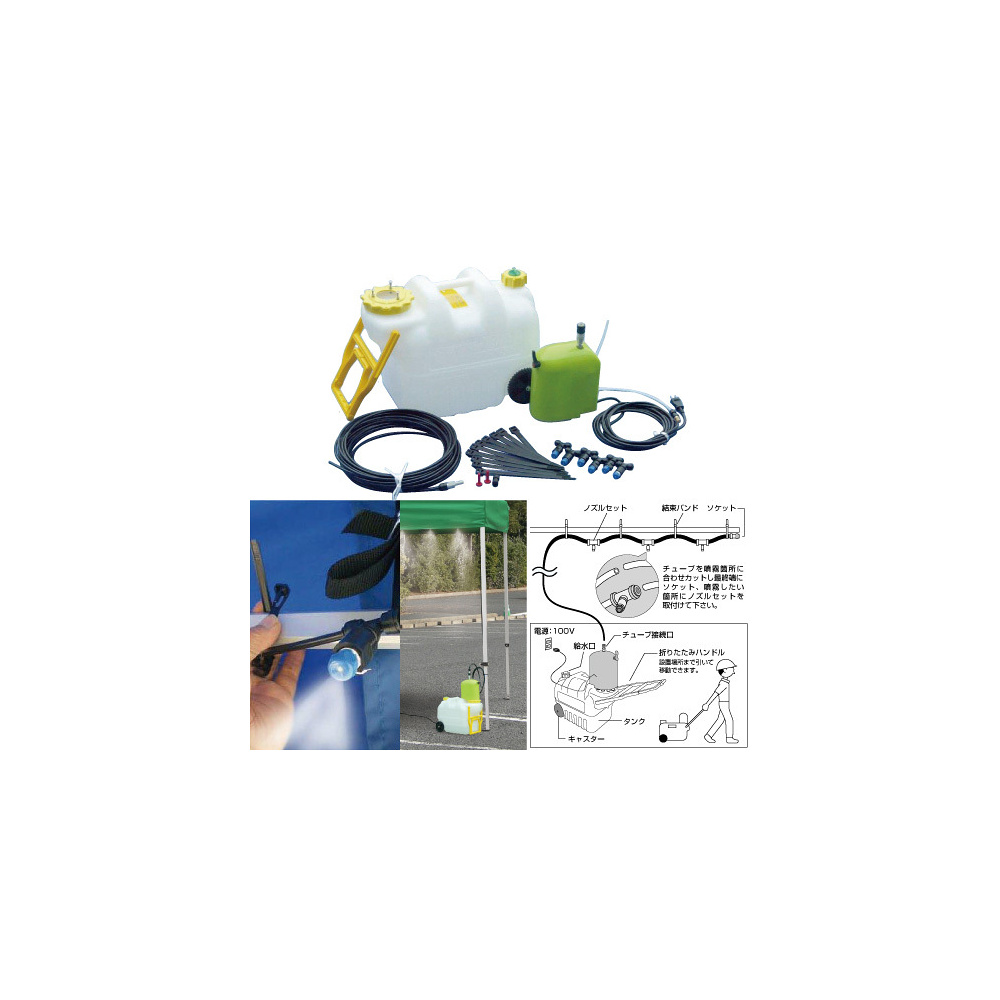 - セット内容:タンク、ポンプユニット(渇水センサー付)、ノズルルセット×6個、送水チューブ(10m)、 結束バンド×10本、プラグ×2個、ソケット×1個