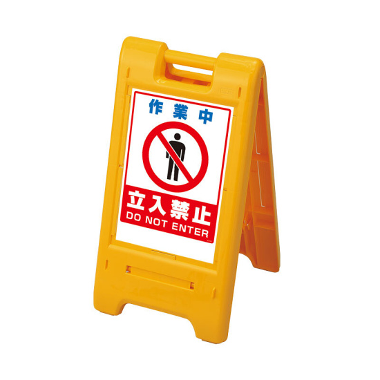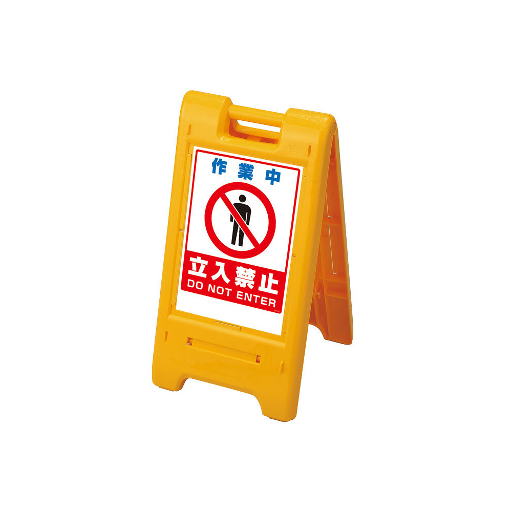 商品説明:サインエース 両面仕様 屋外用 イエロー 表示:作業中 立入禁止 (870-303YE)