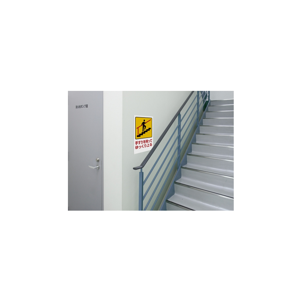 商品説明:注意標識 表示:手すりを持ってゆっくり上る (832-481)