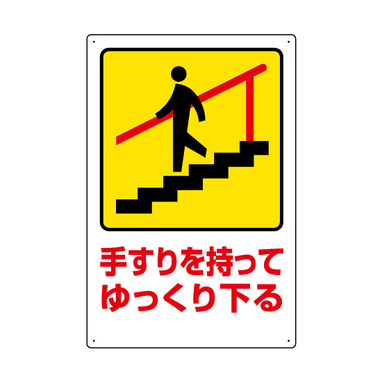 商品説明:注意標識 表示:手すりを持ってゆっくり下る (832-482)