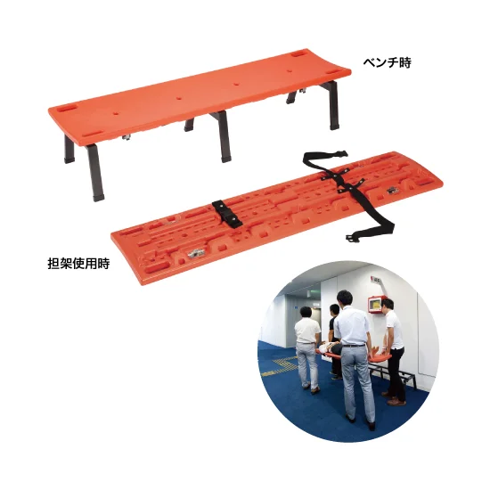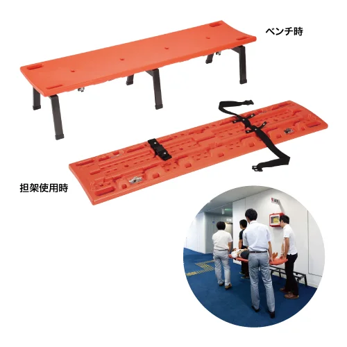 - 普段はベンチとして使用、緊急時には座面を外して担架として活躍