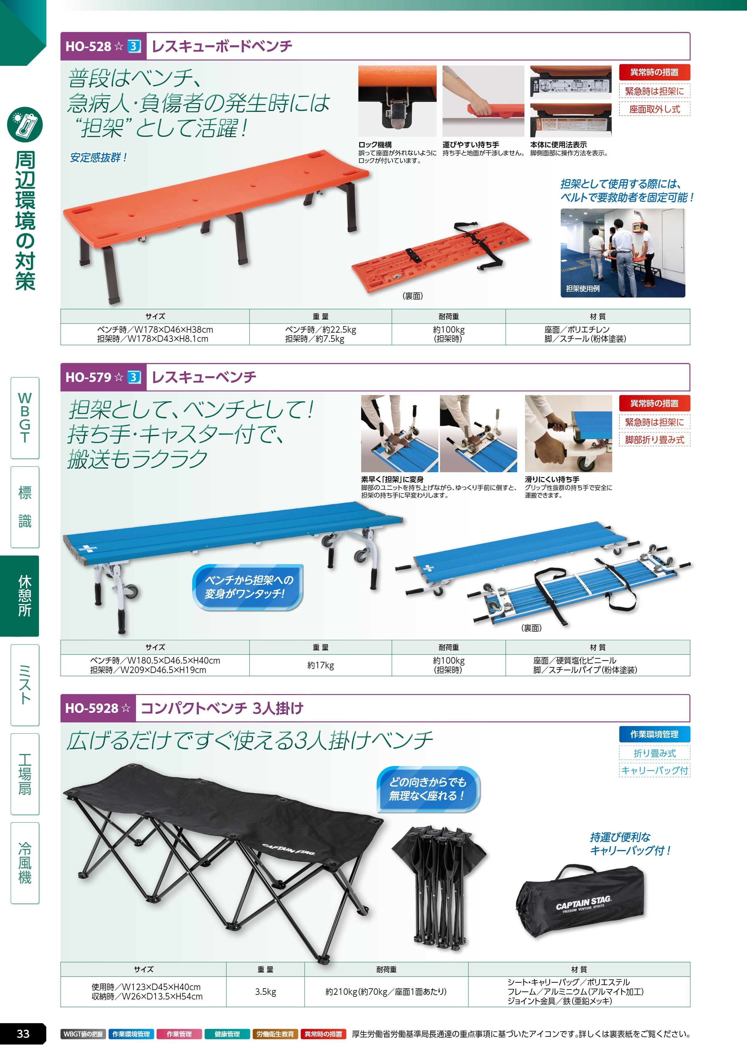 レスキューボードベンチ (HO-528)は、ユニット 熱中症対策用品カタログ 2026年版(166R) P.33に掲載されています