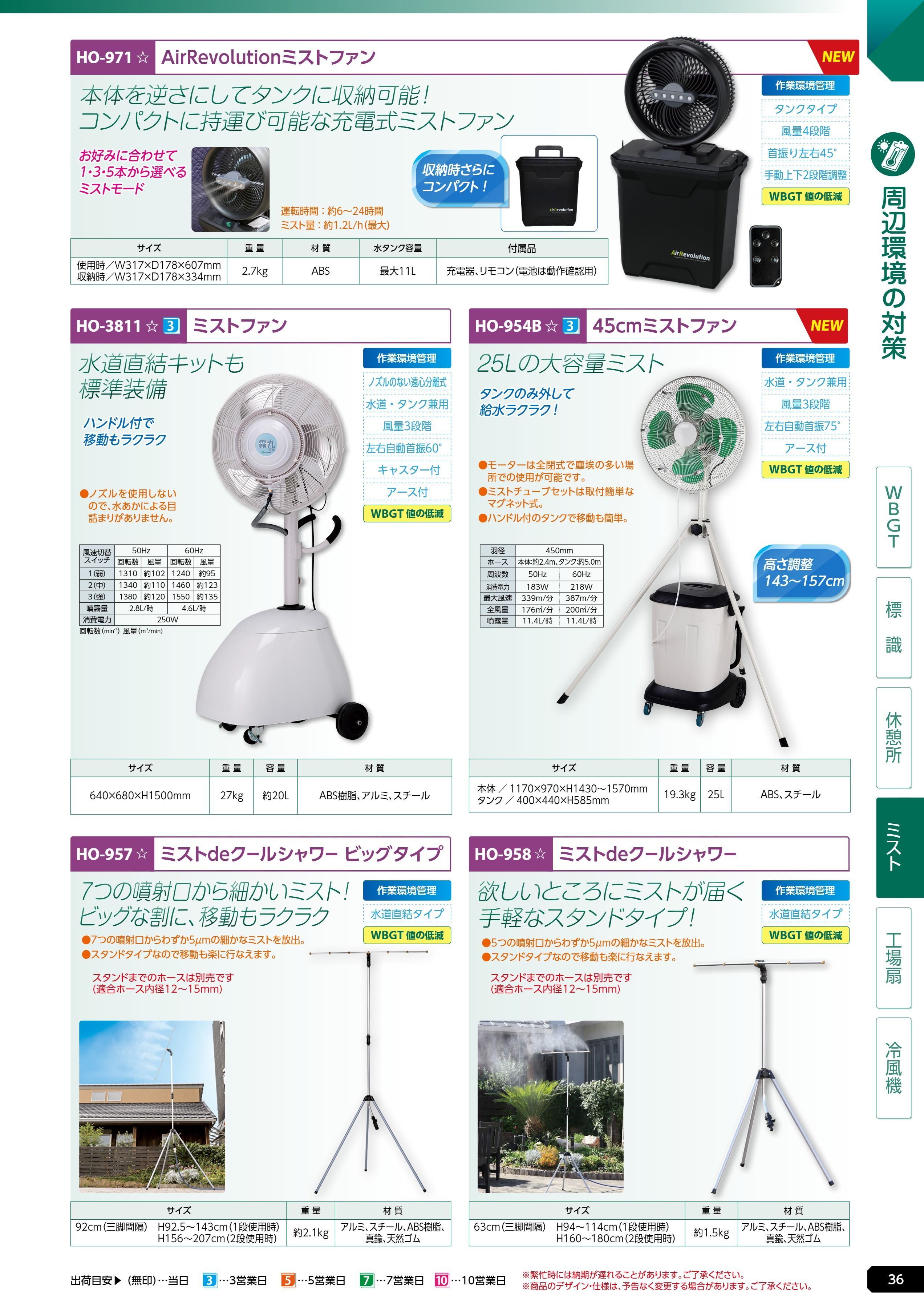 ミストファン (HO-3811)は、ユニット 熱中症対策用品カタログ 2026年版(166R) P.36に掲載されています