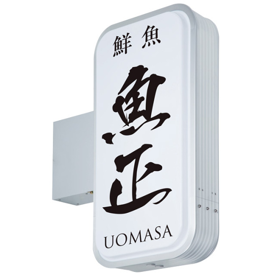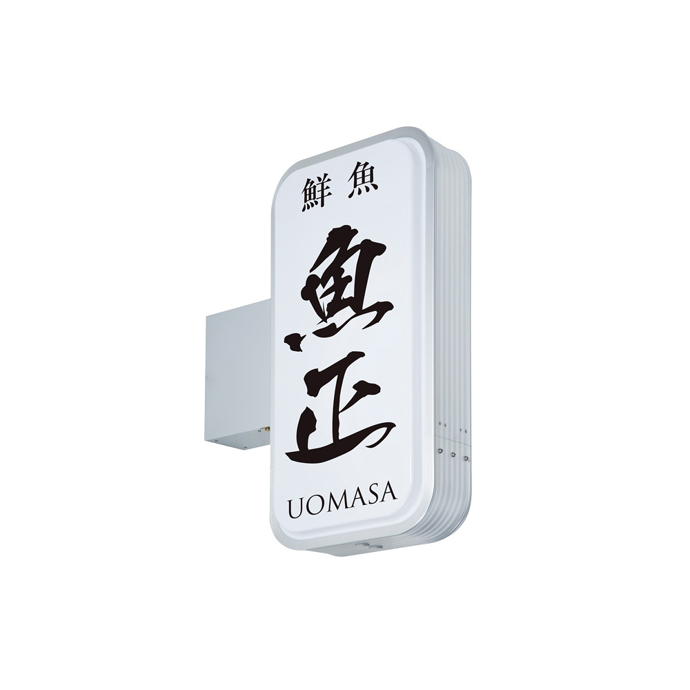 タテヤマアドバンス製アルミ突出しサイン。W450×H900mm角丸型。両面仕様・屋外対応。