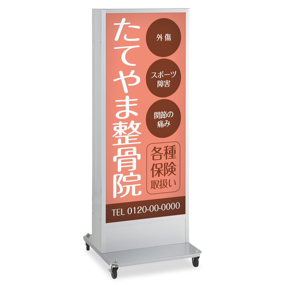 LED式電飾スタンド看板(挟み込タイプ) ADO-910NT-LED(W)-S シルバー 高さ1600mmを使った看板デザイン例のご紹介!