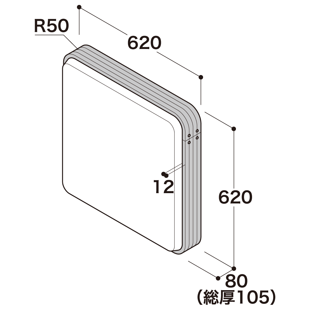 - W620×H620×D80mm(総厚:105mm)