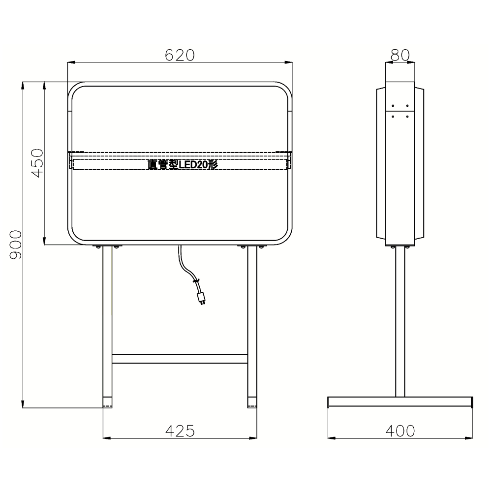- 直管型LED20型内照式・プラグ付きケーブル2メートル