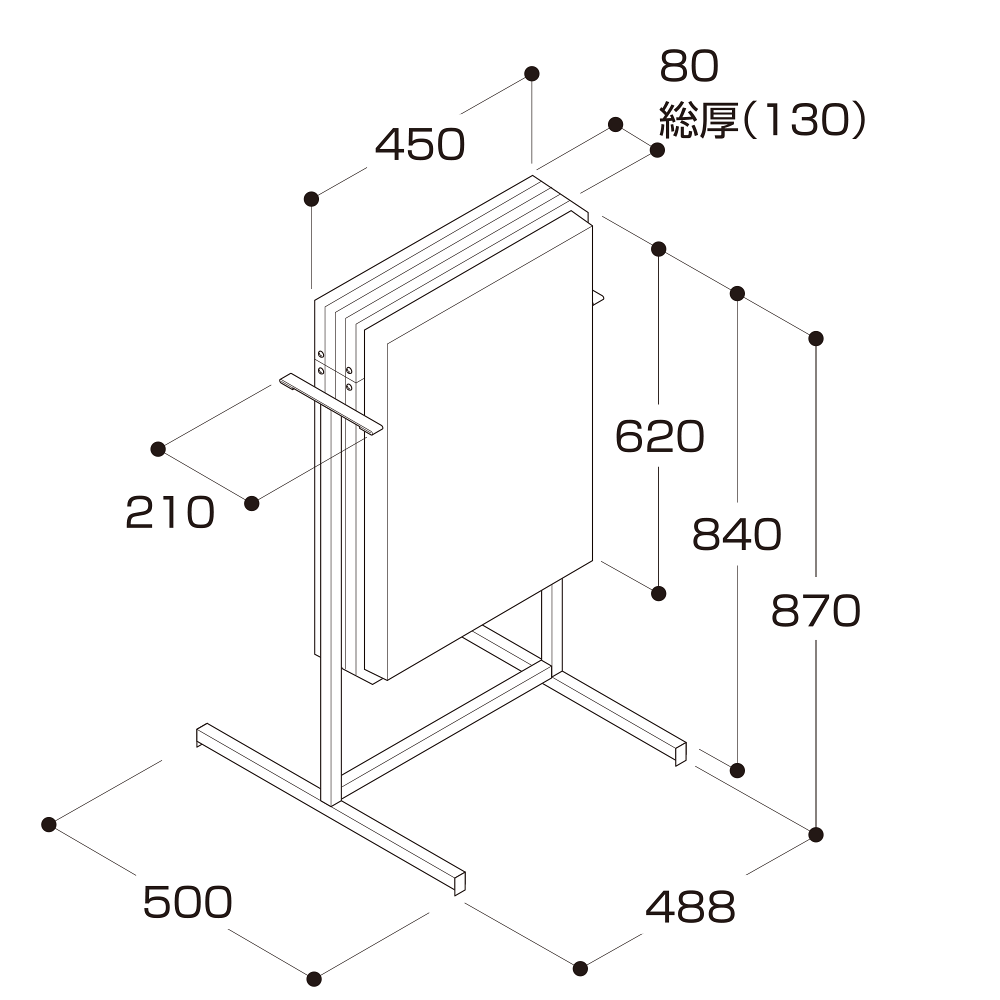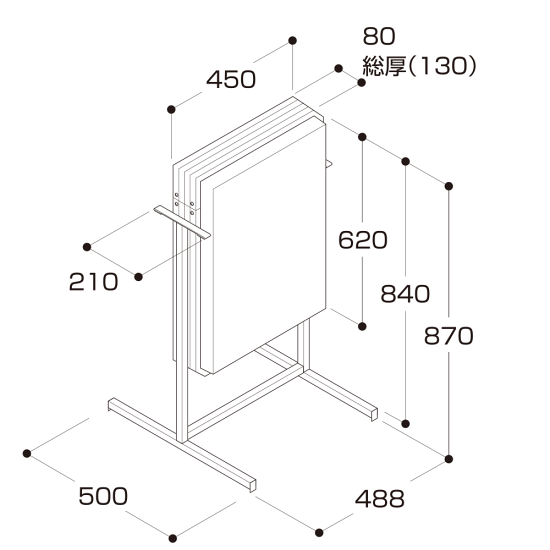 - W488×H870×D500mm