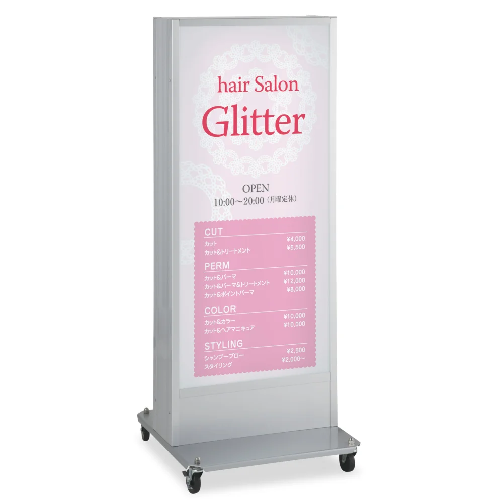 LED式電飾スタンド看板(貼込タイプ) ADO-920NT-LED-S シルバー 高さ1500mmを使った看板デザイン例のご紹介!