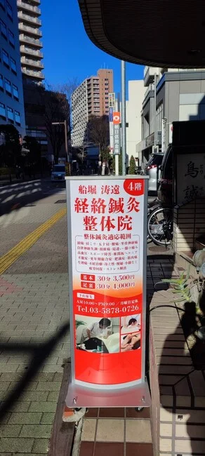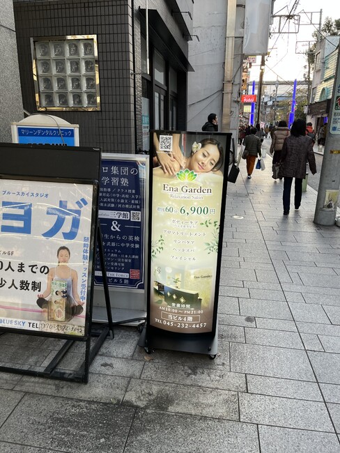一階の歩道近くの立て看板を置いて良いと言われている場所に設置しています。