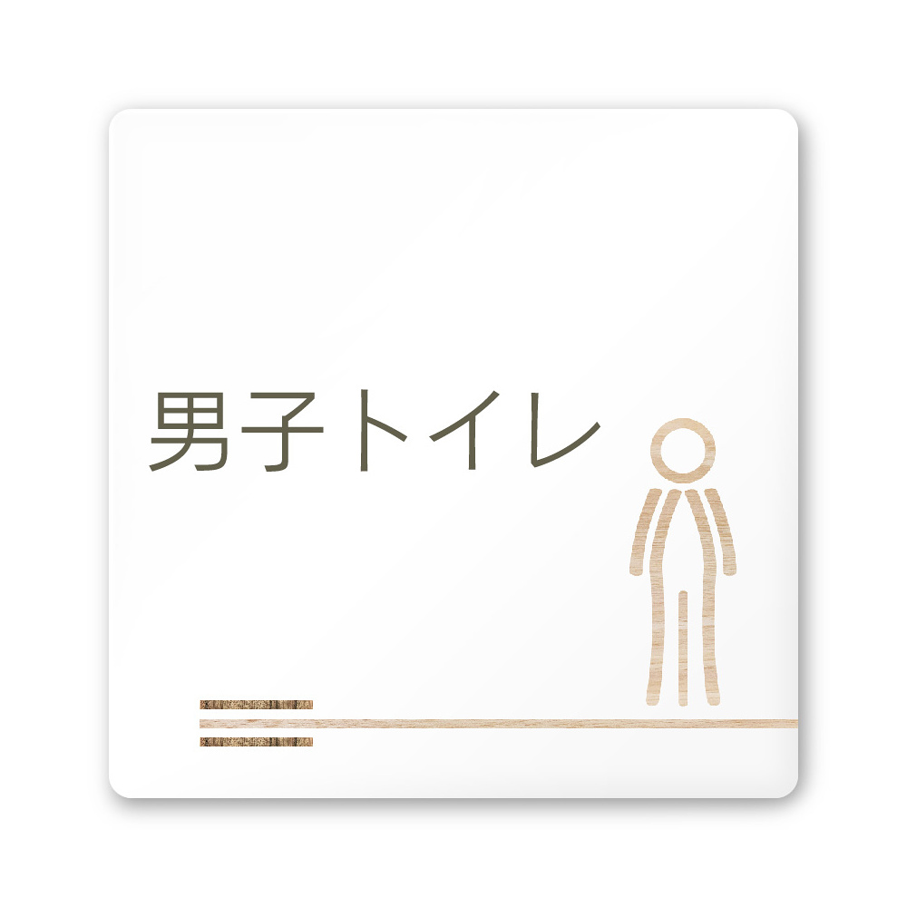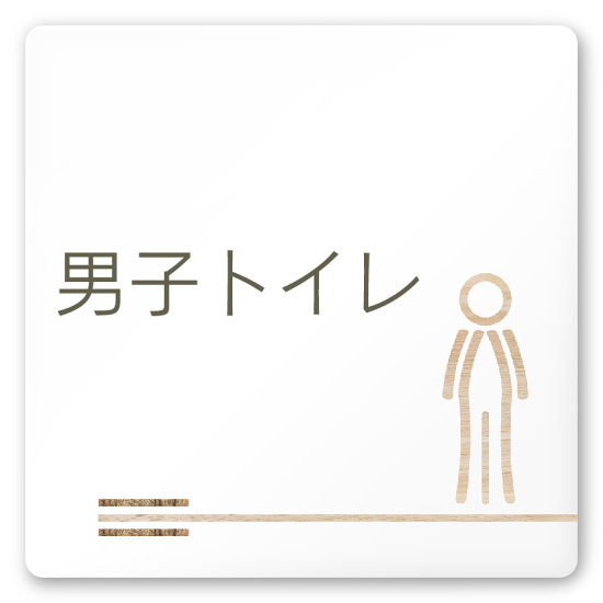 デザイナールームプレート 会社向け 木目横帯 男子トイレ1 白マットアクリル W150×H150 (AC-1515-OA-IM1-0103)